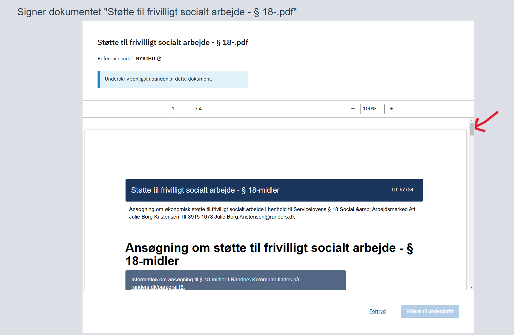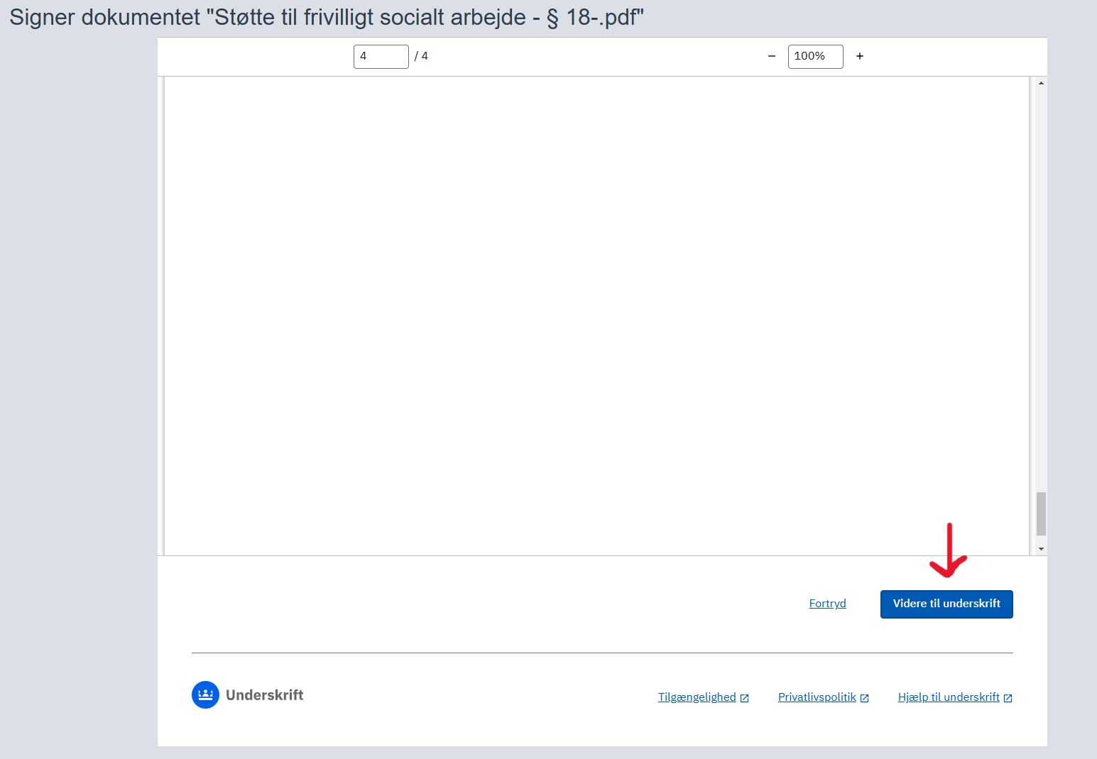 3) Klik nu på knappen "Videre til underskrift" i bunden af siden.